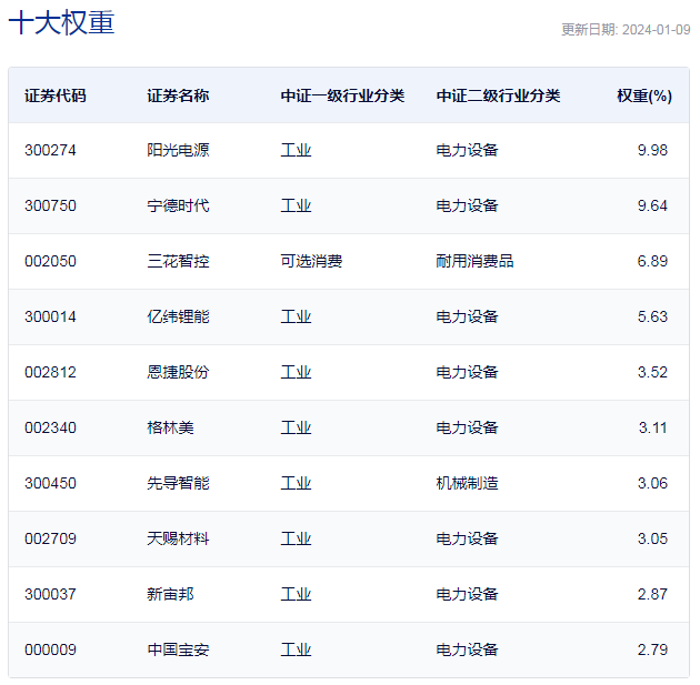 中证电池主题指数(简称CS电池)从沪深市场中选取业务涉及动力电池、储能电池、消费电子电池以及相关产业链上下游的上市公司证券作为指数样本,以反映电池主题上市公司证券的整体表现。从成分股行业分布来看,CS电池指数的权重集中于锂电池、锂电化学品、太阳能、消费电子组件和储能等细分行业上市公司,全面地覆盖了电池产业的各个细分领域和不同应用场景。