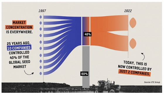 相比于劳动力市场供给端的愈发碎片化,作为需求端的跨国大公司们已经能够控制市场、制定交易条件并稳固地赚取利润。市场集中度的大幅提升在诸多行业都可以被明显观察到。例如过去20年内,超过60家制药企业被合并为10家巨型国际药企;如今2家种子企业就可以控制全球种子市场40%的份额,而25年前该市场份额由10家企业共享;全球四分之一的线上广告收入由Meta、Alphabet和亚马逊三家瓜分;仅贝莱德、道富银行和先锋集团三家基金管理公司就掌握了20万亿美元的民间资产,相当于20%的市场集中度。
