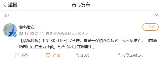 图片来源:青岛市黄岛区委宣传部官方微博截图